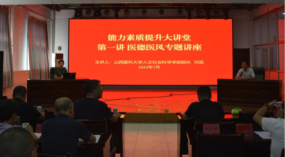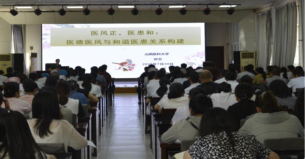 7月30日,受山西省荣军医院邀请,人文社会科学学院院长邓蕊教授赴山西省荣军医院作医德医风专题讲座。讲座题目为《医风正,医患和:医德医风与和谐医患关系构建》,来自山西省荣军医院300余位工作人员参加。