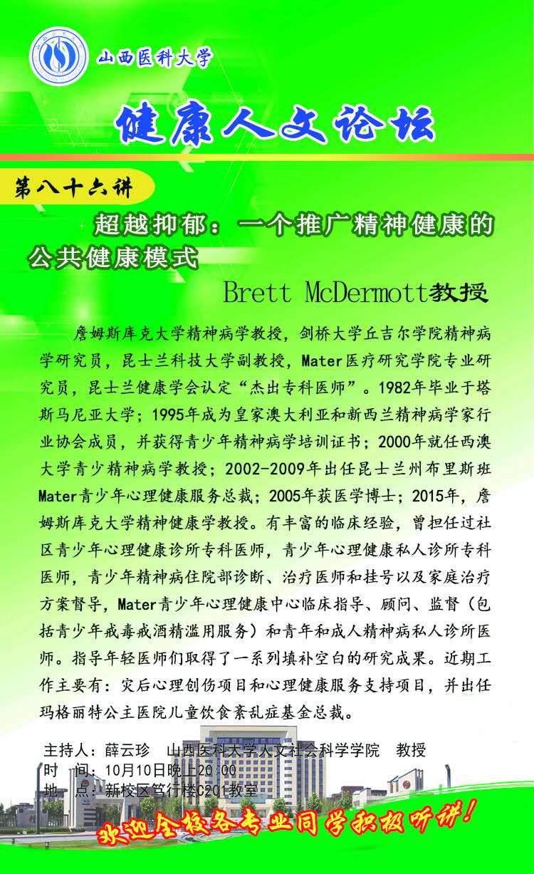 健康人文论坛第八十六讲“超越抑郁:一个推广精神健康的公共健康模式”