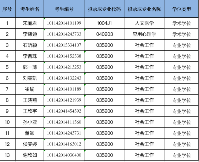 2022年人文社会科学学院第一志愿招收攻读硕士学位研究生部分专业拟录取名单