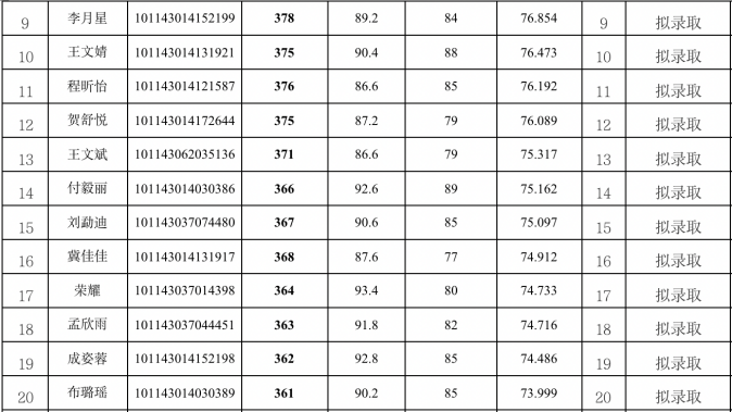 第一志愿招收攻读硕士学位研究生部分专业拟录取名单