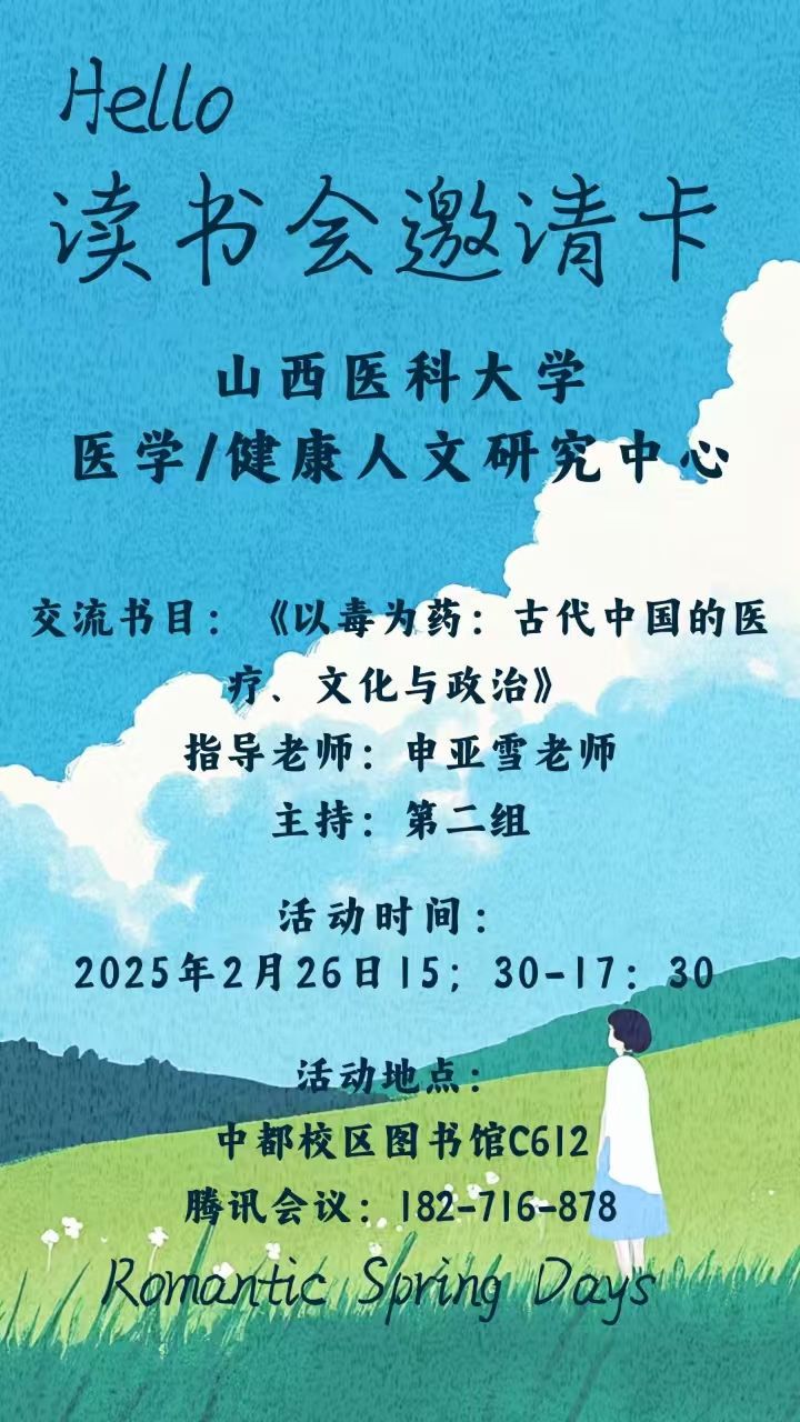 人文医学专业读书会预告:交流书目《以毒为药:古代中国的医疗、文化与政治》