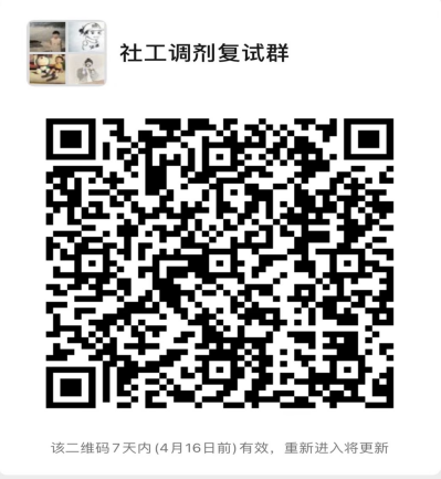人文社会科学学院成立调剂复试工作微信群(社工专业、应用心理专业、人文医学专业),请接收到调剂通知并进入复试名单的考生扫描二维码进微信群,进入时请备注自己的姓名和报考专业,所有关于招生工作的通知我们会在群里和官网进行公布,有任何关于招生工作的问题也可以在群里提问,无关人员勿入。