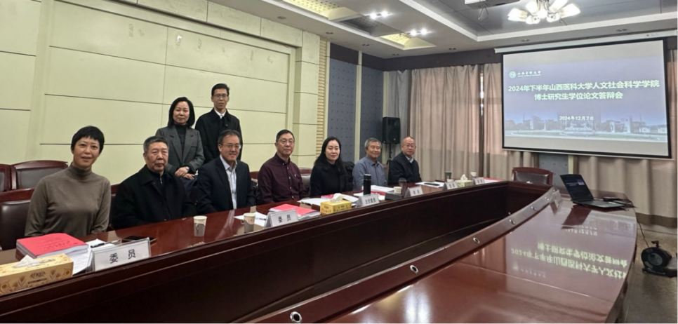 2024年12月7日,我院人文医学专业举办2024年冬季博士学位论文答辩会,此次答辩委员会成员有北京大学医学史研究中心张大庆教授(组长)、北京大学医学人文学院唐文佩、万象城allwincity官网健康人文研究中心段志光教授、万象城allwincity官网公共卫生学院郑建中教授、万象城allwincity官网护理学院韩世范教授、万象城allwincity官网人文社会科学学院王志中教授、万象城allwincity官网人文社会科学学院邓蕊教授、万象城allwincity官网人文社会科学学院邓婧讲师(秘书)。