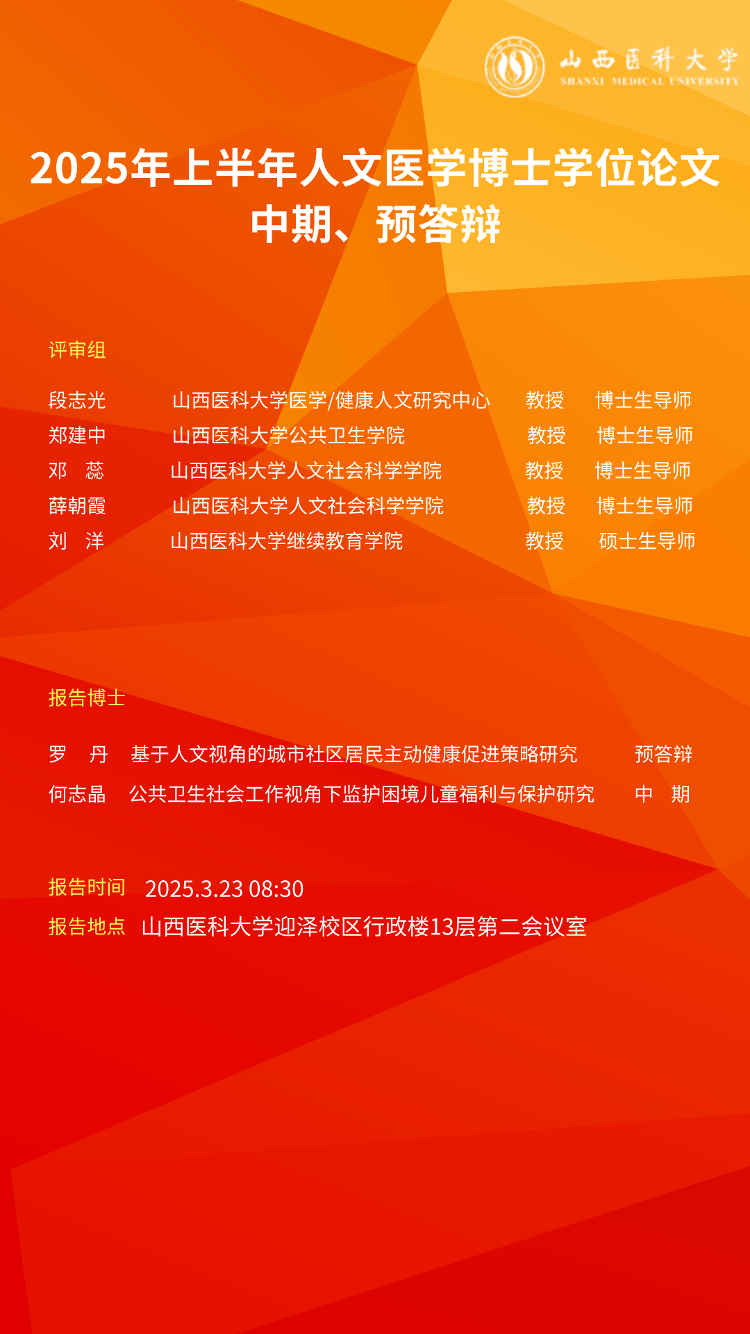2025年人文医学专业博士研究生学位论文预答辩、中期报告会