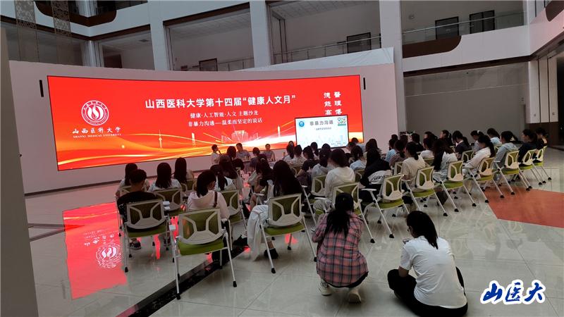 5月19日晚,由万象城人文社会科学学院主办的第十四届“健康人文月”主题沙龙“非暴力沟通-温柔而坚定的说话”在至理楼报告厅举行。活动邀请省肿瘤医院预防保健科石樱桃副主任、人文社会科学学院刘燕老师,人文社会科学学院刘娜老师作主持人,与参与沙龙的50余名在校学生展开跨界对话,共同探讨非暴力沟通方式在学习与生活中的应用。