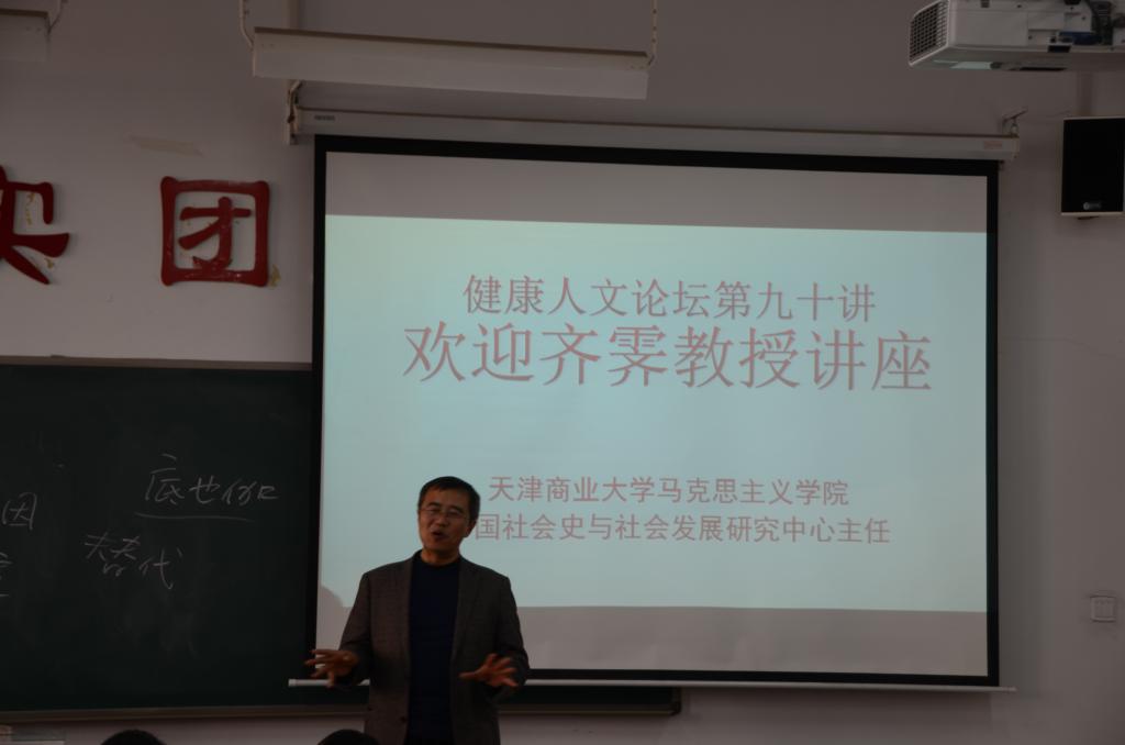 11月3日下午,健康人文论坛第九十讲邀请天津商业大学齐霁教授在中都校区慎思楼A座102教室做了题为《中国共产党对中国和世界禁毒事业的重大贡献》的专题讲座。讲座由人文社会科学学院王志中院长和马克思主义学院苏果云院长共同主持,人文学院、马克思主义学院和管理学院部分师生聆听了报告。