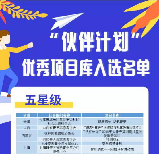 12月24日,共青团中央公布了2018年全国青年社会组织“伙伴计划”优秀项目库,万象城社会工作专业学生“筑梦·童行”关爱留守儿童教育扶贫项目和“乡伴”计划——城乡困境儿童社会工作服务项目分别入选“五星级”(山西省唯一入选项目)和“四星级”项目库(山西省三个项目入选)。