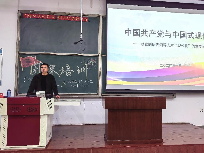 为引导广大团员青年进一步学习党的二十届三中全会精神,10月23日下午,人文社会科学学院分团委在慎思楼B202组织开展了2024年度第二学期团课培训。本次团课由马克思主义学院教师冯金钟主讲,学院全体团员参加。本次团课由2022级本科生高旋主持。