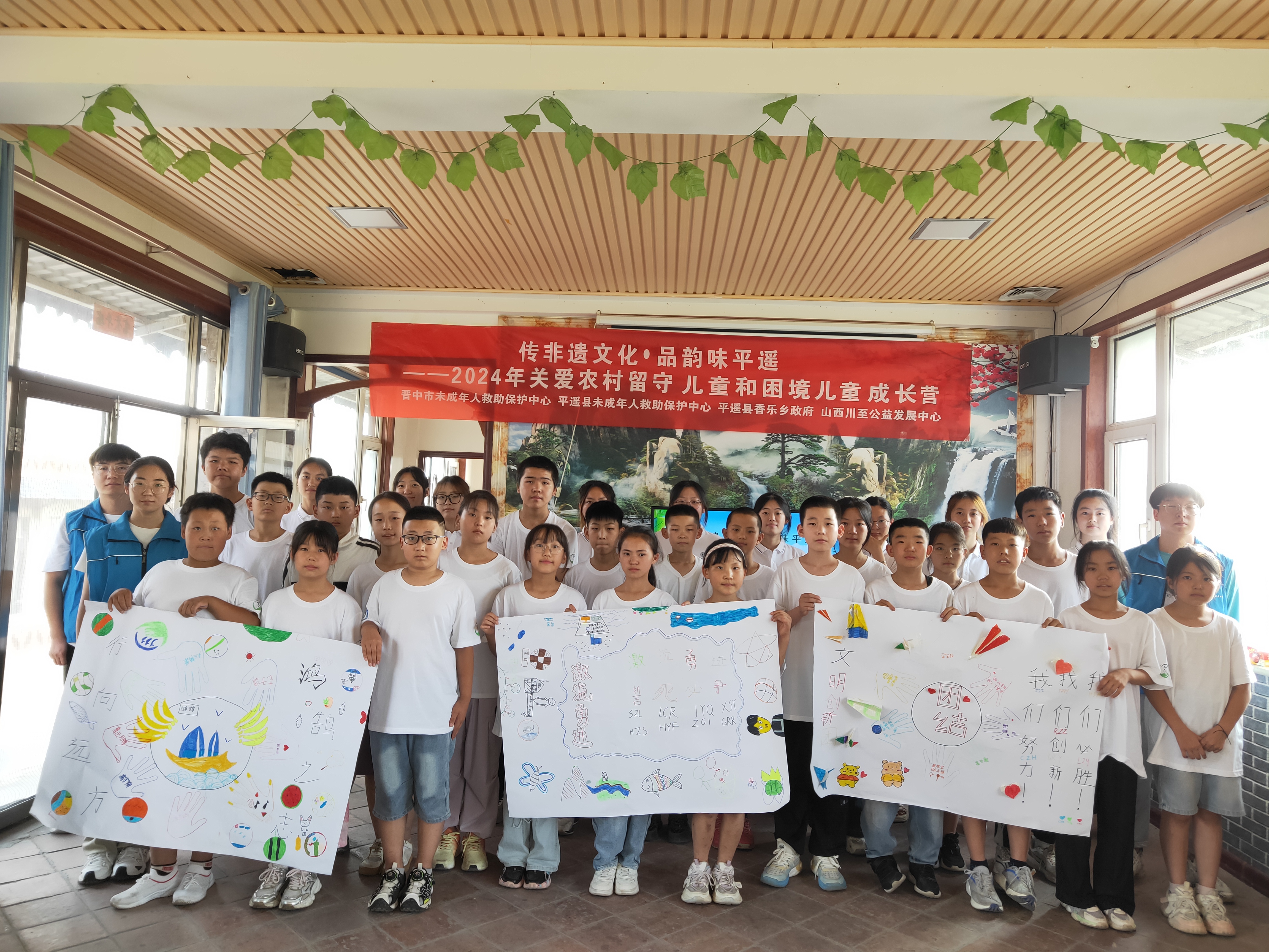 在平遥:实践队和山西川至公益发展中心一起精心策划了“传非遗文化·品韵味平遥”关爱农村留守儿童和困境儿童成长营活动,队员们和23名儿童一道亲手制作巧夺天工的面塑和泥塑,指导儿童绘制色彩斑斓的二十四节气纸浆画,在新时代的三晋大地描绘了绚丽的传统文化画卷,让古老的非遗文化再放光芒。队员们用自己的热情和智慧,在孩子们的心里种下了梦想的种子,搭建了情感的桥梁。