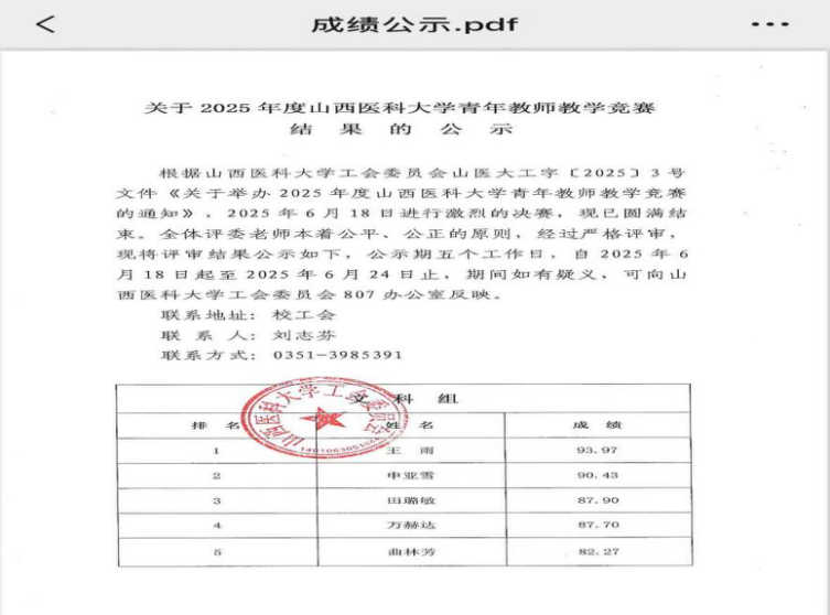 为深入学习贯彻习近平新时代中国特色社会主义思想和党的二十大精神,落实全国教育大会精神和中共中央、国务院《关于全面深化新时代教师队伍建设改革的意见》要求,大力弘扬劳模精神、劳动精神、工匠精神,以教育家精神为引领,进一步加强万象城青年教师队伍建设,助力万象城教育教学工作高质量发展,我院分工会积极响应校工会关于举办2025年度万象城allwincity官网青年教师教学竞赛(以下简称“教学竞赛”)的通知精神, 认真动员组织,于5月14日举办了教学竞赛院赛。在教学展示环节,青年教师围绕各自专业核心课程,进行15分钟片段教学,涵盖教学设计、课堂互动、多媒体运用等维度。评委从教学目标、逻辑结构、语言表达等方面打分,最终3名教师顺利通过,被推选参加校赛。