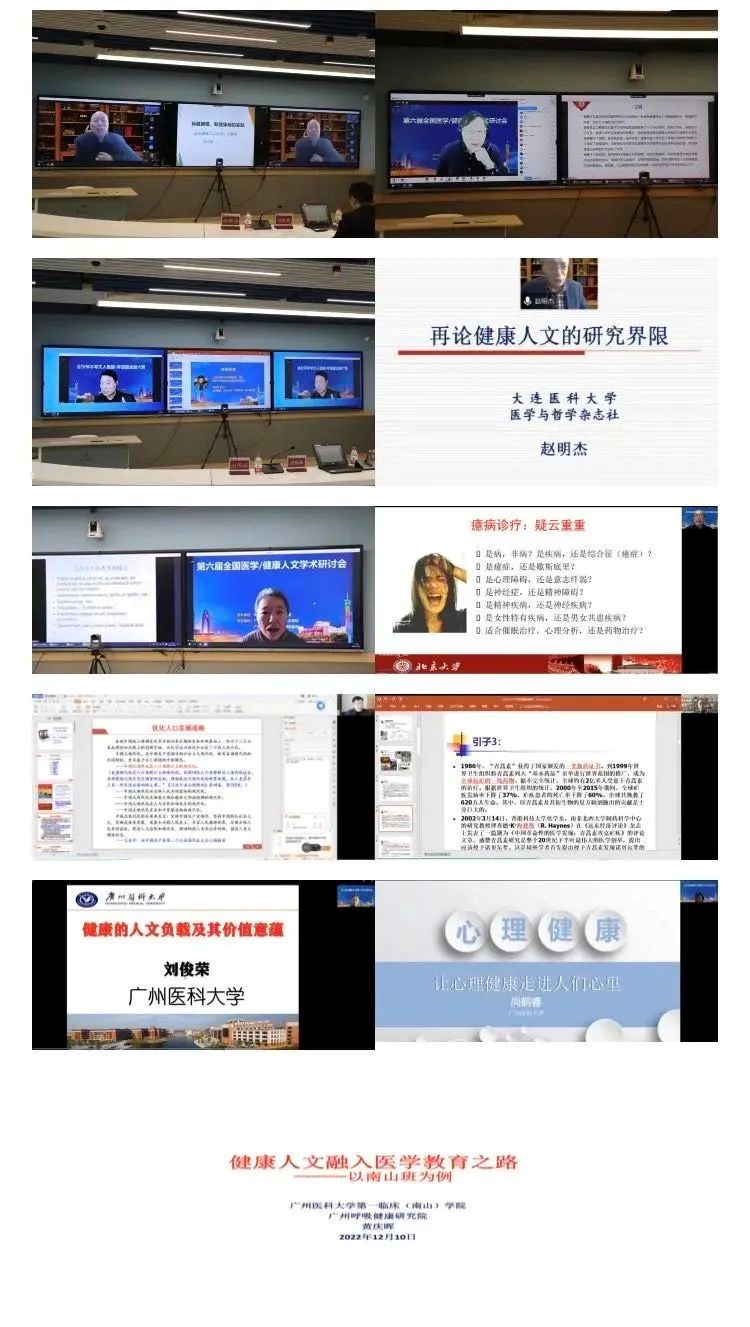 2022年12月10日,第六届全国医学/健康人文学术研讨会在广州医科大学番禺校区举行。此次会议由中华医学会医学教育分会主办,广州医科大学马克思主义学院、广州医学伦理学重点研究基地联合承办。大会紧扣“医学/健康人文”主题,围绕共研、共创、共享前沿健康人文的新理念、新动态、新方法,探讨医学/健康人文的发展趋势。大会以线上线下结合的方式举行,来自全国医疗卫生行业和医学院校的三百多位专家学者聚首“云端”参会。
