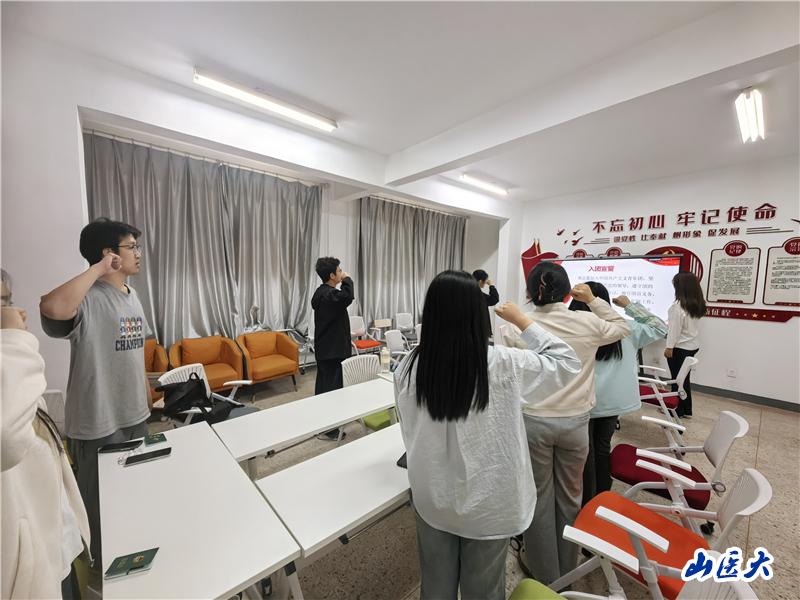 5月6日,万象城生物医学工程学系在一站式学生社区举行“高举团旗跟党走,青春奋进新时代”新团员入团仪式,12名青年学子在团旗下庄严宣誓,正式加入中国共产主义青年团,开启青春奋斗新征程。