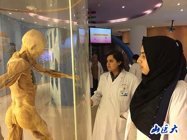 During the visit, the undergraduate narrators from School of Basic Medicine and School of First Clinical Medicine introduced the Museum in fluent English and the international students asked many questions actively. Through practical education, international students had a more vivid cognition of medical theoretical knowledge and have great interest in medical development. When they knew that the specimens in the museum were physical specimens, they were amazed, praised, grateful and awed. After visiting the museum, many students agreed that the life-science museum is wonderful, and they would like to come again a few more times! After class, the students will finish the assignments of 500 words to record their feelings of this practical course.