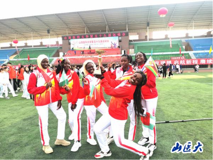 From May 14th to 16th, the 59th School Sport Carnival of our school was held on the Zhongdu campus. In this school games, a total of 54 students were sent to form the international student team by the Institute of International Education. They entered the venue waving the Chinese flag and the flags of 25 countries of origin at the opening ceremony, which adding a different landscape to the opening ceremony.