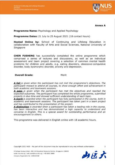 During the summer vacation, Chen Fusheng, a psychiatry major from the School of Mental Health of our university, and 39 students from Southwest University, Guangzhou Medical University, Beijing University of Chemical Technology and other universities participated in the online medical exchange project of the National University of Singapore in the summer of 2021.
