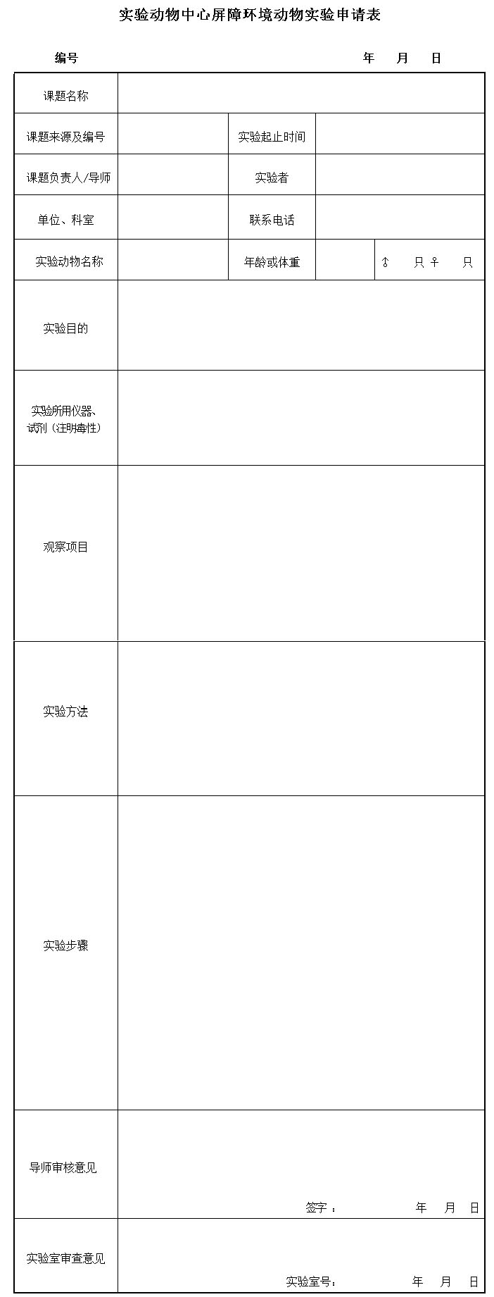实验动物中心屏障环境动物实验申请表