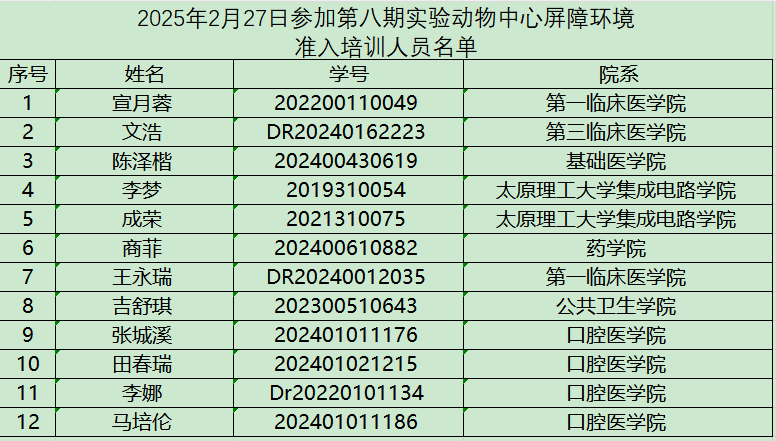 2025年2月27日参加第八期屏障环境准入培训人员名单