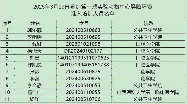 2025年3月13日参加第十期屏障环境准入培训人员名单
