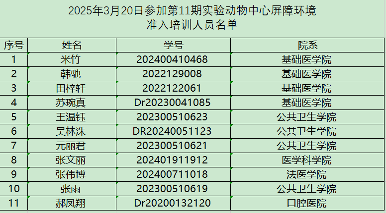 2025年3月20日参加第11期屏障环境准入培训人员名单