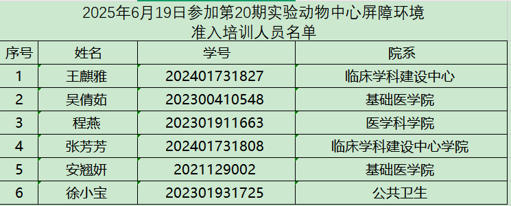 请以下参培人员于2025年6月19日14:30至动物中心三层多功能会议室参加培训和考核!