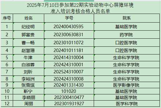 以下培训合格人员须在一个月内进入屏障开展实验,逾期未进需重新接受培训和考核,望知悉!
