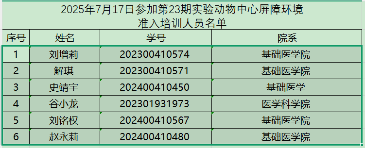 请以下参培人员于2025年7月17日下午14:30到实验动物中心三层多功能会议室参加培训和考试!