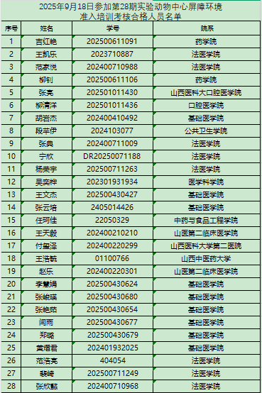 以下培训合格人员需在一个月内进入屏障开展动物实验,逾期未进者须重新接受培训和考试,望周知!