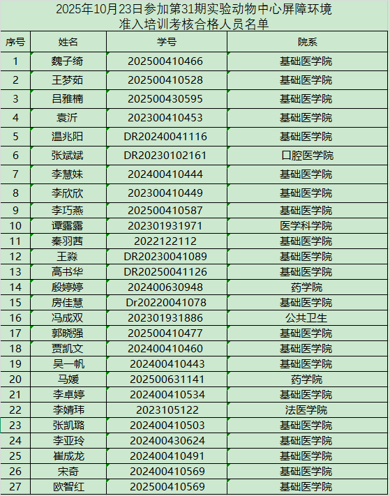 以下培训考核合格人员需在一个月内进入屏障开展实验,逾期未进者须重新参加培训和考核,望周知!