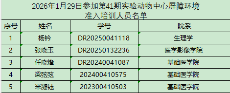 请以下参培人员于2026年1月29日下午14:30到中都校区实验动物中心三层多功能会议室参加培训和考试!
