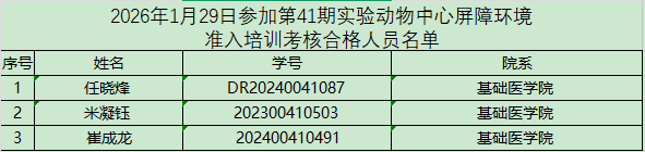 以下培训合格人员需于一个月内进入屏障开展实验,逾期未进者须重新接受培训和考核,望周知!