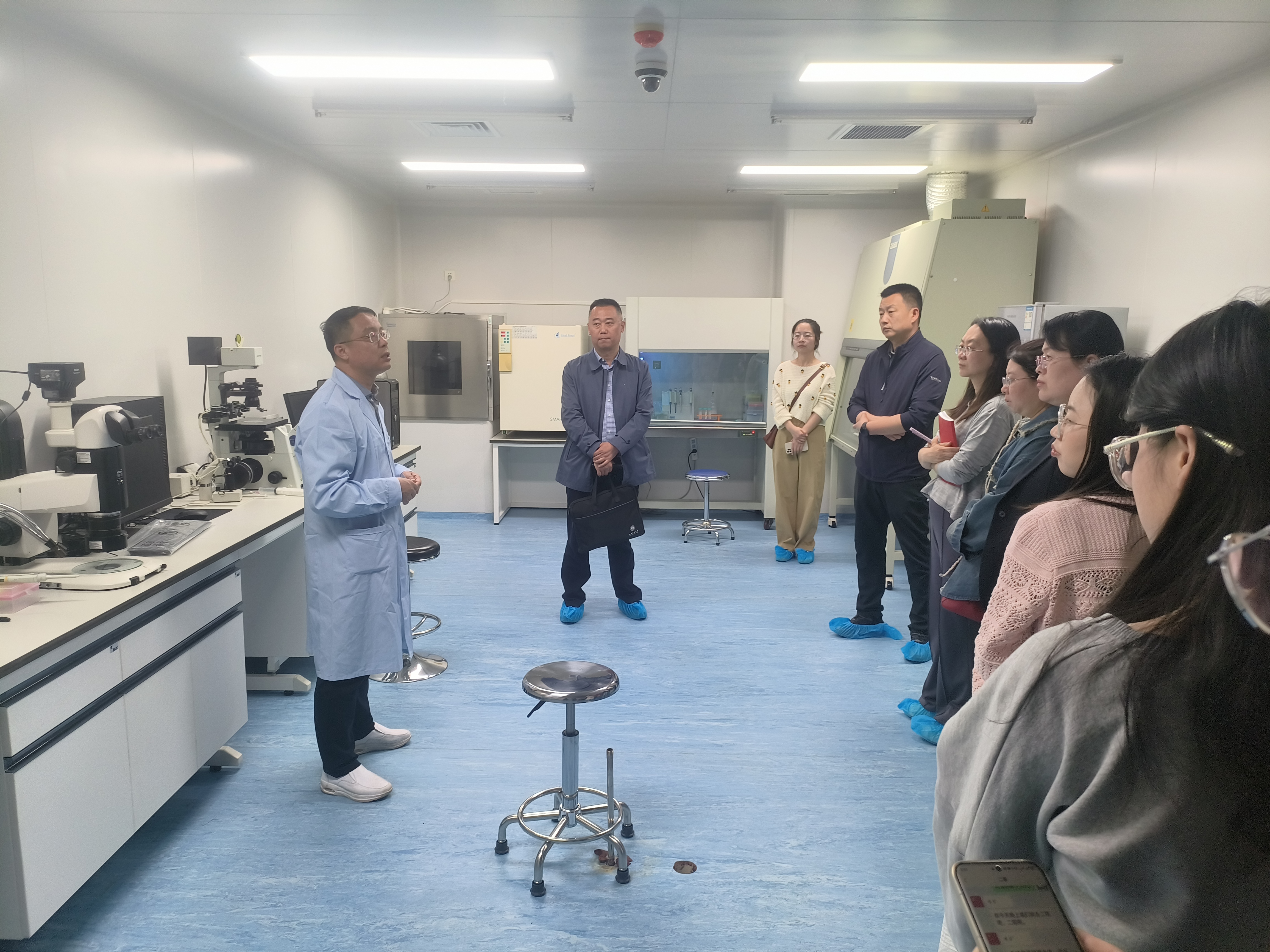 学工部支部书记张晶一行20人进入参观走廊,考察了实验动物屏障环境和胚胎操作实验室等设施。实验动物中心负责人陈朝阳介绍了实验动物中心的发展目标、发展规划、动物实验情况等。陈朝阳表示,针对校内外科研需求,已经面向师生开展了14期屏障环境准入培训,提高了科研工作者对实验动物国家标准、福利伦理的认识;开展了基因修饰动物的制作供应服务;突破万象城特有的中国特色实验动物—中国地鼠基因编辑制作关键技术,实现基因编辑中国地鼠的制作工作。一年内将通过实验动物福利伦理机构评价,获得CNAS和GLP认证,面向社会承接动物实验项目服务、药物安全评价等工作。