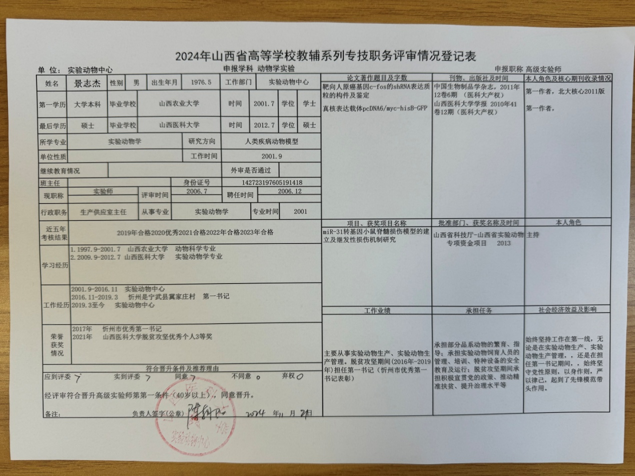 实验动物中心职称评审组 2024年11月21日