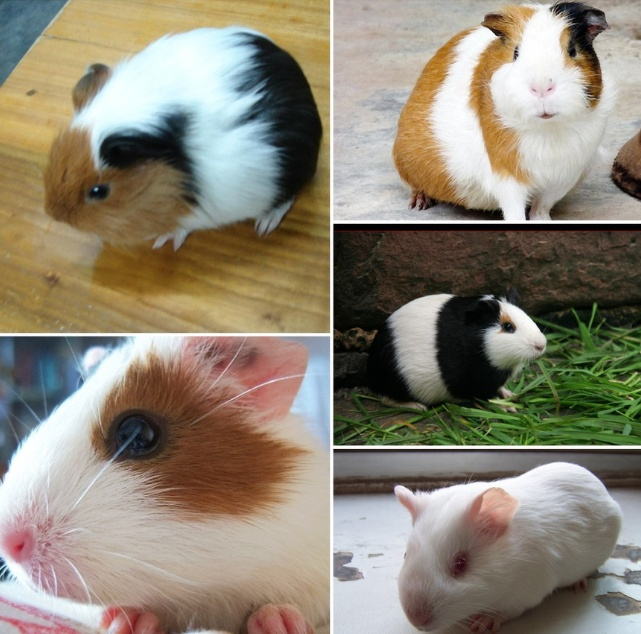 目前我国各研究教学单位使用的豚鼠多为短毛的英国种豚鼠。英国种(荷兰种)一般毛短而光滑,毛色主要有黑、棕、白3种颜色,个体毛色有单毛色、双毛色、三毛色等,实验豚鼠主要由这种驯化而成。不同毛色的英国种豚鼠杂交可形成不同的变种,如纯白色、黑色、棕色等,因此这些非纯种短毛豚鼠,被毛颜色是多样的,但基本是棕黄、黑、白三种颜色,称三色豚鼠,也可有二色或单色豚鼠。