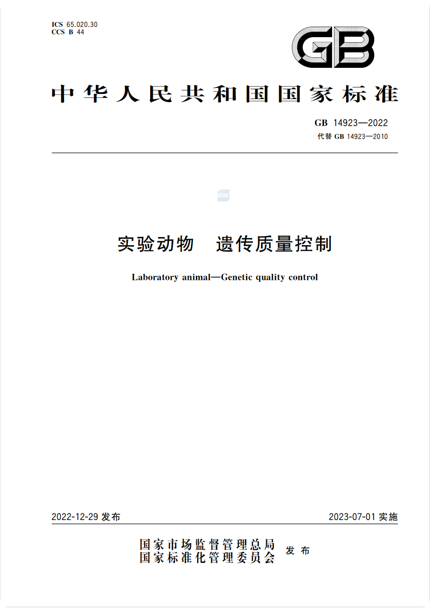 GB 14923-2022 实验动物 遗传质量控制