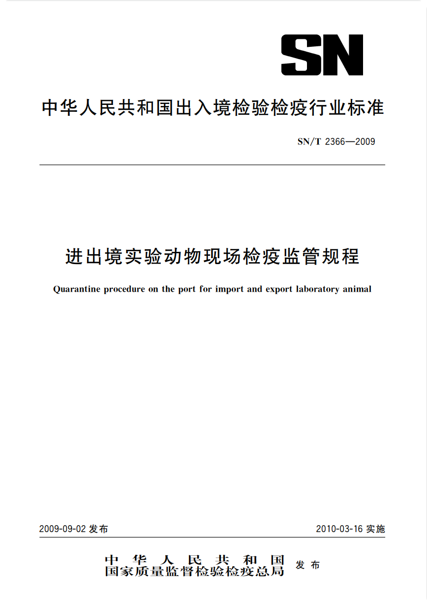 SN-T 2366-2009 进出境实验动物现场检疫监管规程