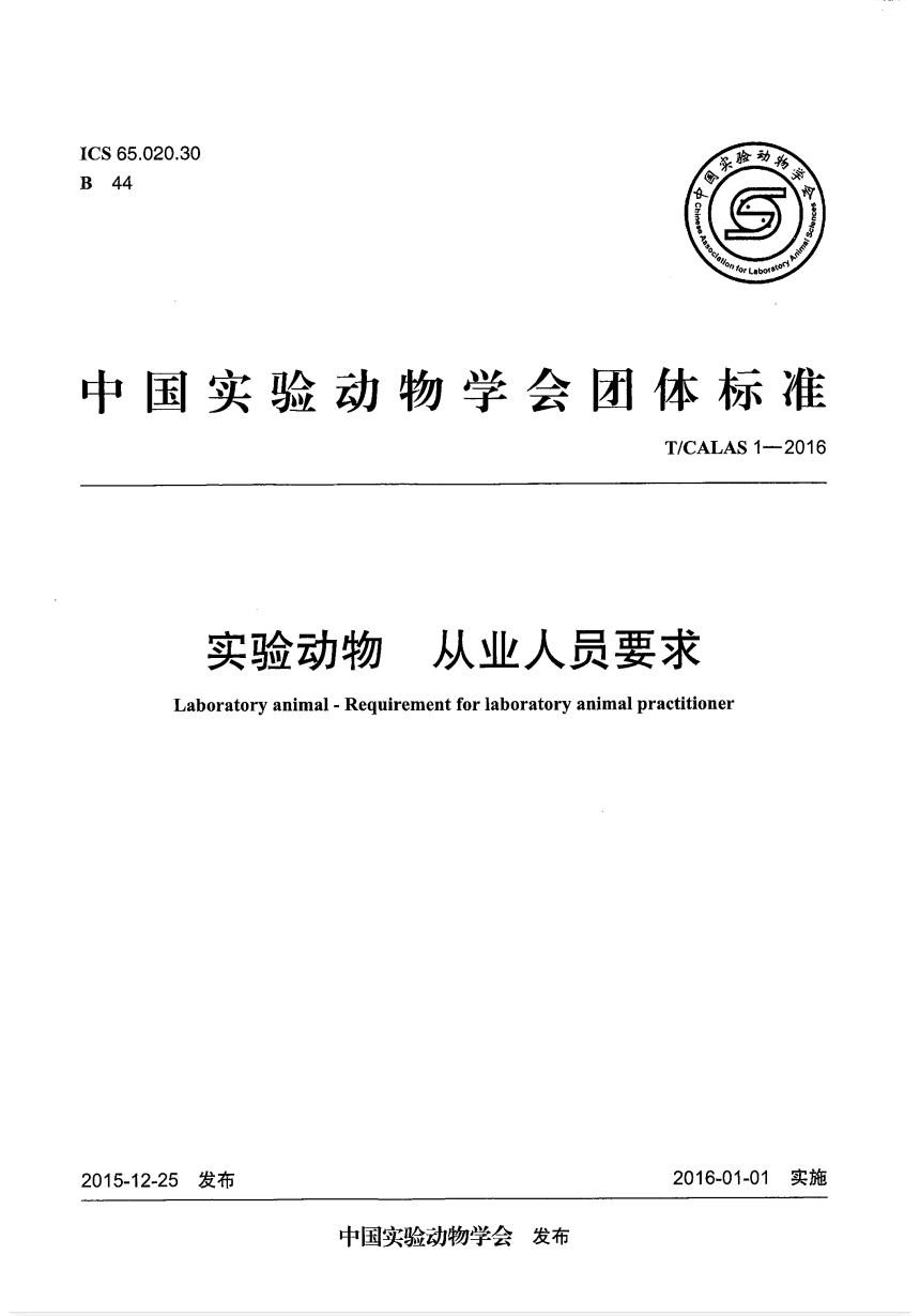 T-CALAS 1-2016 实验动物 从业人员要求.pdf