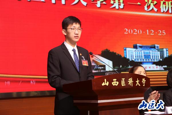 佟浩然代表第二十六届学生会作了题为《功崇惟志方行远 业广惟勤道且长 为建设特色鲜明高水平研究教学型医科大学贡献青春力量》的工作报告,田若楠代表研究生会作了题为《青春逢盛世 奋斗正当时 为建设特色鲜明高水平研究教学型医科大学贡献青春力量》的工作报告。报告认真总结了第二十六次学生代表大会以来和研究生会近年来取得的成绩,客观分析了当前学生会、研究生会面临的挑战及存在的不足,明确了学生会、研究生会的改革方向和发展目标。