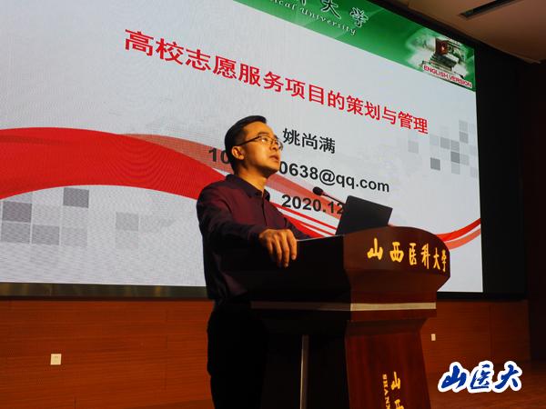校团委副书记姚尚满为全校志愿服务社团作了《高校志愿服务项目的策划与管理》的专题培训。