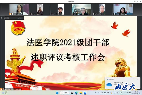 12月16日晚,法医学院分团委通过线上方式开展了2021级团干部述职评议考核工作,法医学院分团委书记杨蓉、思想政治辅导员张君和2021级5名团干部参加了本次会议。