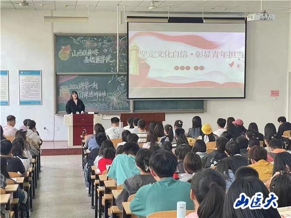 4月18日下午,基础医学院分团委在慎思B201开展2023年第一期团课培训,学院分团委书记李颖主讲,学院共300余名学生参加。