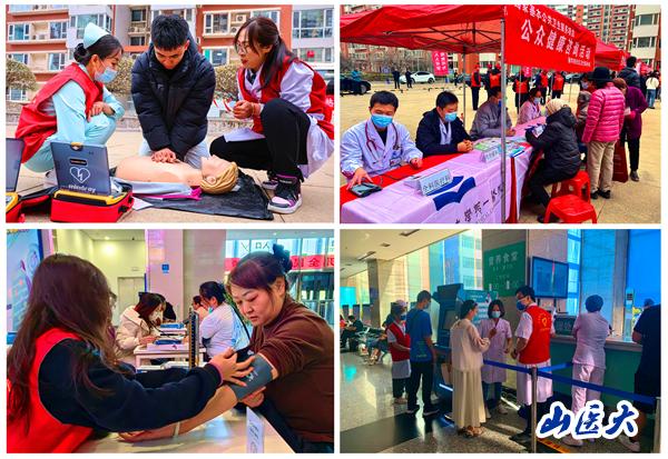 第一临床医学院、第二临床医学院、第三临床医学院、口腔医院等院系团组织充分发挥自身学科特色和学生专业优势,组织动员广大志愿服务者利用爱耳日、世界青光眼日、全国爱肝日、世界睡眠日等特殊时间节点,在医院或社区开展义诊服务、健康宣传、心理咨询等活动,同时针对部分患者在就医过程中遇到的实际困难,继续开展就诊导引、设施使用说明等常规志愿服务活动,使“有困难找志愿者”的观念逐步深入人心,成为弘扬社会主旋律、传播社会正能量的重要载体和生动实践。在活动现场,疼痛科、心血管内科、全科医疗科、内分泌科的青年志愿者通过现场问诊、体健报告分析等为前来咨询的居民提供了专业的健康分析;急诊医学中心的志愿者,通过场景模拟的方式,分步骤为大家完整示范心肺复苏现场救护流程,耐心指导大家进行操作练习。一份爱心、倾情奉献,志愿者们忙碌的身影透视着未来“人民好医生”的模样,也体现了万象城学子时刻牢记习近平总书记殷殷嘱托,不负韶华、勇担使命、大力弘扬雷锋精神的青春誓言,以实际行动投身强国建设和民族复兴的生动实践,让“奉献、友爱、互助、进步”成为青春主旋律和时代最强音。