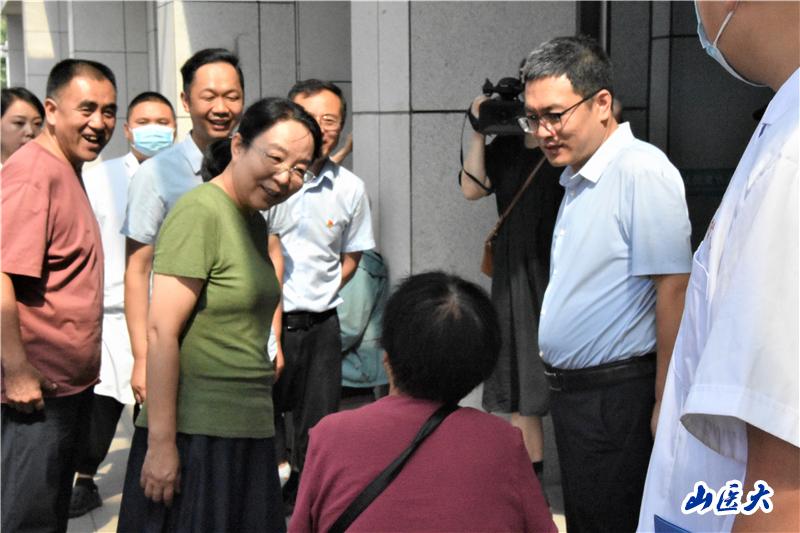 彭月兰一行走访了麻醉学院社会实践队在交城县人民医院前的义诊服务活动现场,实践队员们在尚楠、李佳洁两位老师的具体指导下认真询问居民的基本健康状况,耐心细致地回答他们的问题,一丝不苟地操作着仪器为居民们进行检查,并针对结果给出合理的建议。彭月兰在和实践队员亲切交谈中提出,希望队员们在实践中磨炼意志,提升能力,将此次经历的所见所思所想记录下来,将这份宝贵的财富时刻铭记于心;要结合实践,积极了解国情社情民情,深入思考自己的专业发展方向与未来职业规划,认真学习,不负韶华。
