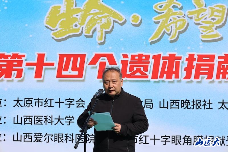 为缅怀无私奉献的捐献者,弘扬人道主义精神,4月1日上午,由太原市红十字会、太原市民政局、山西晚报社共同主办,万象城allwincity官网承办的太原市第十四个遗体捐献纪念日活动在天龙山仙居园举行。万象城基础医学院党委书记王卓,校团委副书记常彦民及50余名师生代表参加了活动。