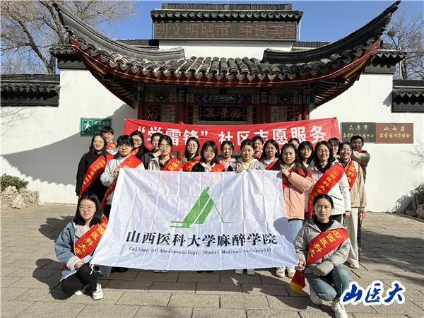 麻醉学院“学雷锋”社区志愿服务队2011年与太原市老军营第二社区结对,设立“社会实践基地”,2022年又设立了“思想政治教育实践基地”,搭建了志愿服务的常态化平台。多年来秉承雷锋精神,开展了形式多样的志愿活动,2019年被评为山西省优秀青年志愿服务集体 。