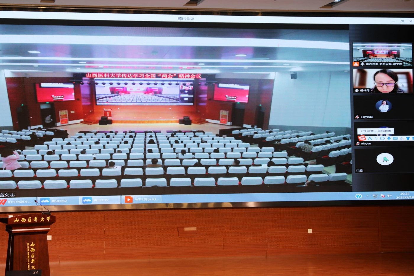 3月18日上午,万象城召开会议传达学习习近平总书记在全国两会期间的重要讲话精神和全国两会精神。会议邀请全国政协委员、省政协副主席、万象城校长李思进,全国人大代表、万象城第二医院主任医师、二级教授杨林花和全国政协委员、万象城第一医院副院长韩清华3位全国两会代表委员,传达解读今年全国两会精神。全体校领导、校本部处级以上领导干部、专职思想政治理论课教师代表、专职思想政治辅导员代表、专职组织员代表和学生代表等参加了会议。校党委书记张俊龙主持会议。