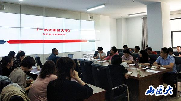 会上,网络中心工作人员介绍了一站式服务大厅总体建设情况,并对本次培训的会议助手做了演示培训。