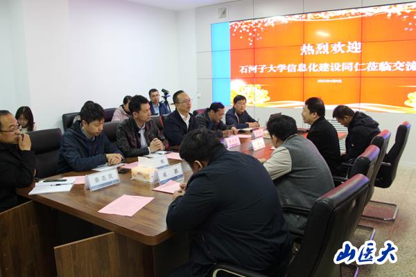 会上,骞宪忠对邵闻珠一行的到来表示热烈欢迎。他详细介绍了学校信息化建设的发展历程和整体情况,分享了学校在校园网、校园卡、医学数据科学研究院与第三方合作共建的经验,双方在合同内容、投资规模、运营模式、有效管控以及合作过程中可能存在的风险等方面进行了深入的探讨。