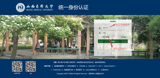 2、登陆的用户名和密码:首次登陆的用户名和密码统一为您的职工号或学号,初始密码为:您的身份证号码后六位。首次登录后务必修改为复杂口令。