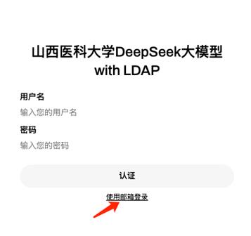 首次访问 DeepSeek 服务时,默认选择便捷的校园统一身份认证登录方式。在登录页面输入您的工号和密码,点击“认证”按钮,即可快速开启服务体验。