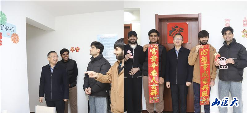 1月24日上午,校党委常委、副校长焦向英前往中都校区留学生公寓,看望假期期间留校的留学生,国际教育学院党总支书记郭亚斌,副院长于晓霞以及学院全体老师陪同慰问。